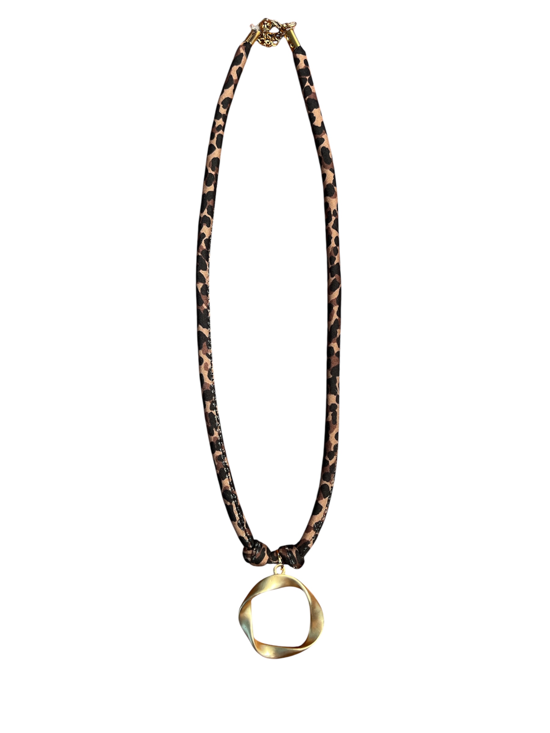 Descubre la versión más sutil y versátil de nuestro collar Wild Gold. Su aro central, ahora más fino y pequeño en dorado mate, aporta un detalle elegante sin perder protagonismo. El cordón con estampado animal print de leopardo en tonos marrón y negro añade un toque salvaje y moderno. Una pieza ligera y sofisticada, ideal para realzar tu estilo con distinción en cualquier ocasión.